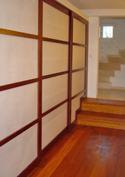 Eine Schiebetürwand aus indischem Palisander mit Japanpapierbespannung oder darf es eher ein funktioneller, raumteilender Schrank sein? Trennwände aller Art stellen wir in unserer eigenen Werkstatt her, passgenau und sauber verarbeitet.